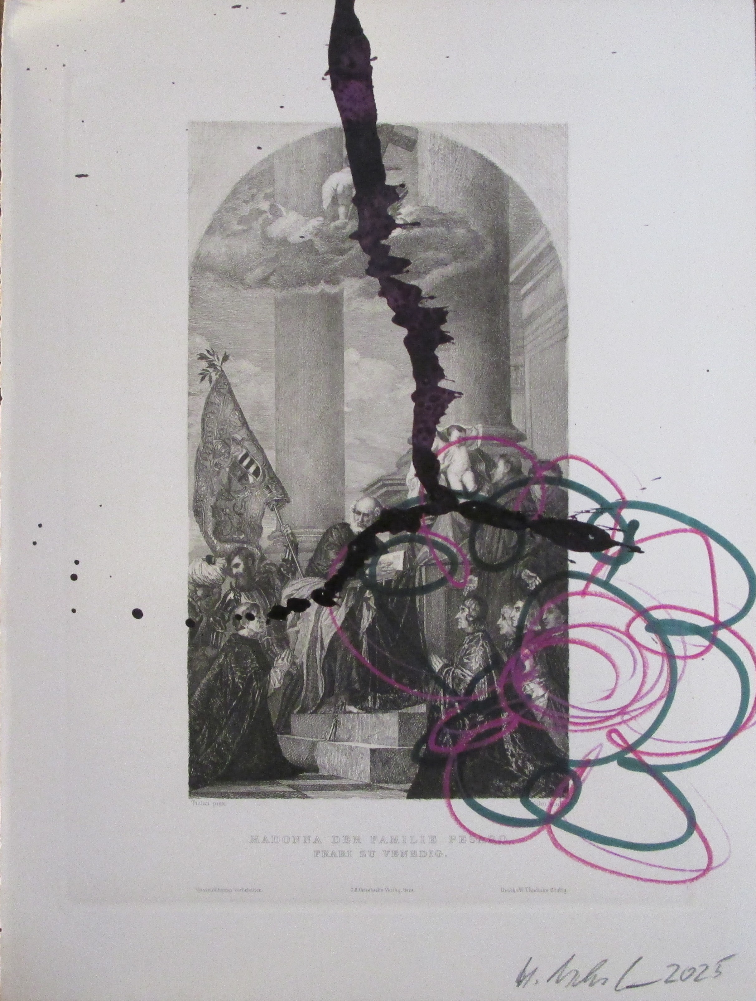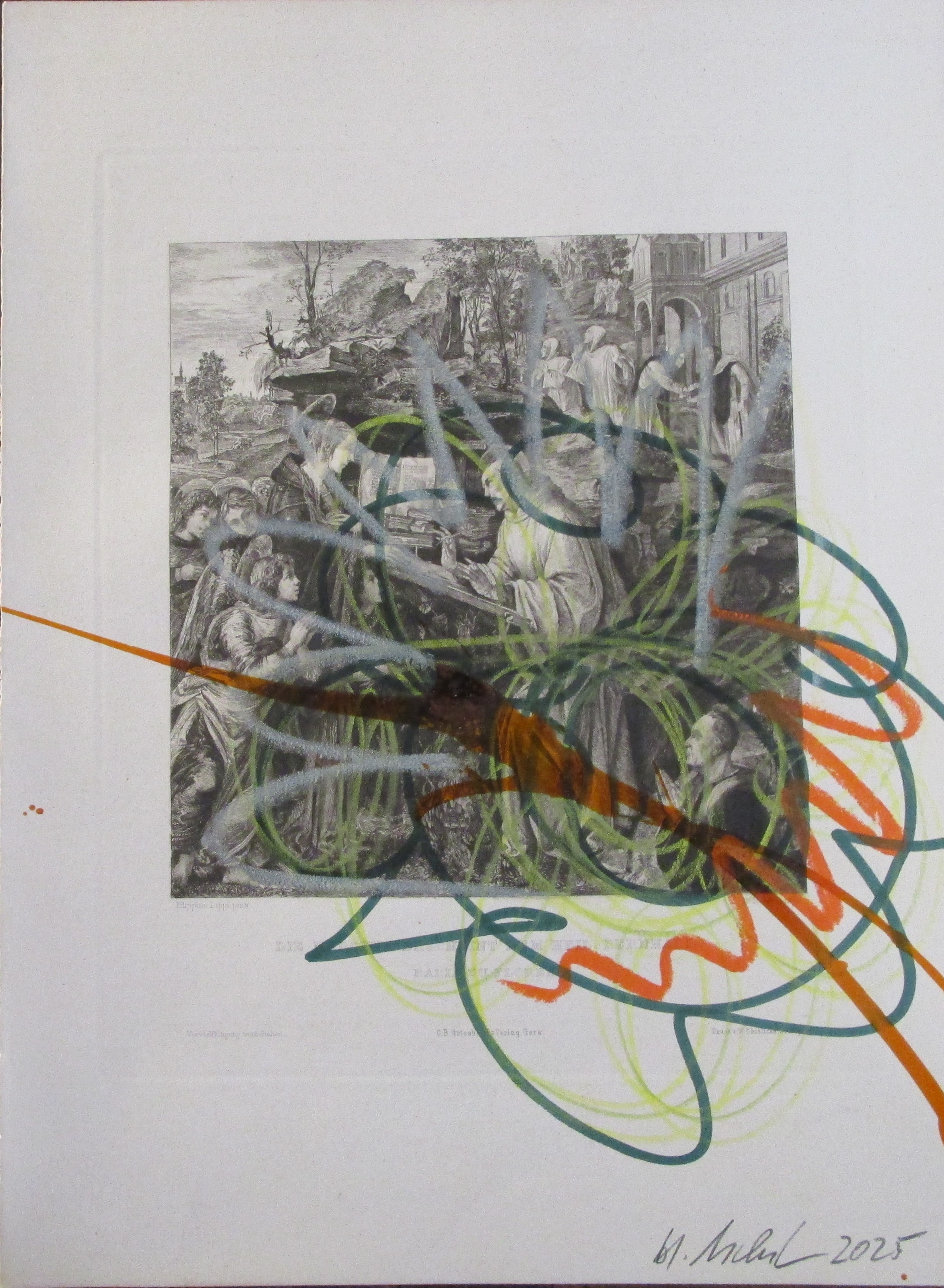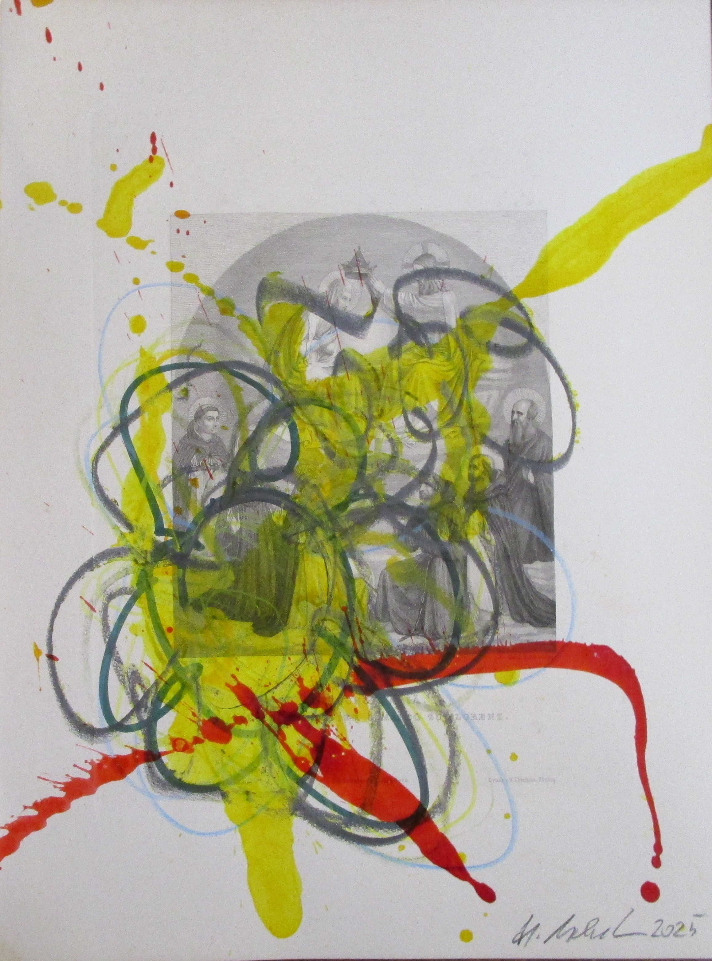 auch rau (durch dicker aufgetragene Ölkreide beispielsweise). Diese Werke bilden keine realen Dinge ab, diese Form der Kunst ist aleatorisch und hat das Element des Zufälligen. Die Komposition, die Harmonie aus Form und Farbe, die dabei entsteht, regt den Kopf, die Phantasie des Betrachters an, die ganz subjektiv bestimmte Dinge erkennen läßt. Bewusst gebe ich diesen Werken daher auch keine Titel. Ich will die Phantasie des Betrachters nicht in eine bestimmte Richtung lenken, sondern zum Nachdenken, Verweilen, zum Dialog mit dem Werk einladen.